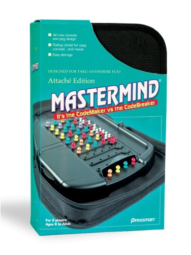 Mastermind now comes in a convenient zippered cloth carrying case so you can take it anywhere. Great for vacations and family get togethers, Mastermind is a game that lets the Codemaker and Codebreaker face off. Includes travel case, 106 code pegs, 30 key pegs in two colors and plastic storage board with code shield.