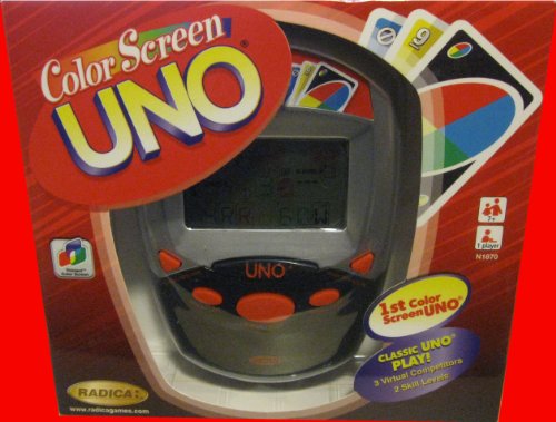 All the fun of the classic UNO card game on a vibrant color screen! - The color screen is amazing! Uses four AAA batteries.