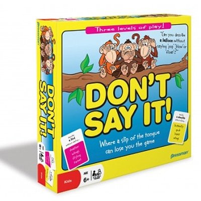 Can you describe a balloon without saying "pop," "blow" or "float"? You'll need to be quick to avoid being buzzed out by the timer. Features three levels of play (easy, medium and difficult) that make Don't Say It! the perfect game to play with different age groups. Includes 100 game cards, card holder, timer, score pad, pencil and rule sheet. Requires three "AAA" batteries, not included.